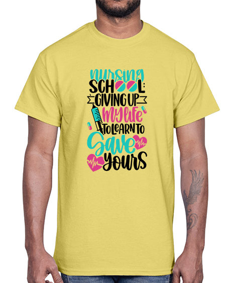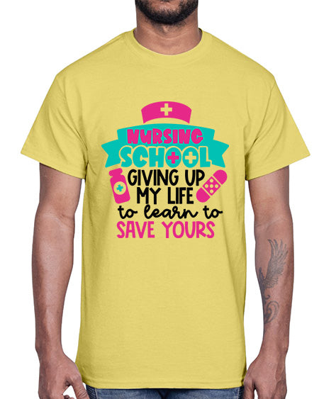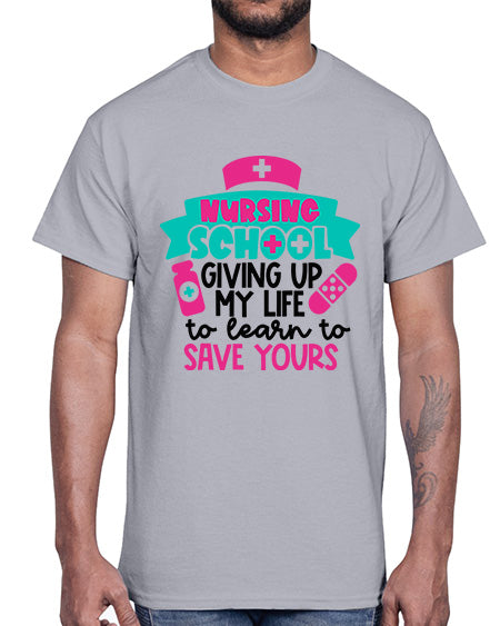 Nursing School Giving Up My Life To Learn To Save Yours Style Style 1277#- nurse- Cotton Tee