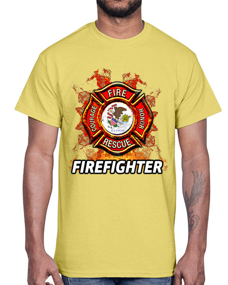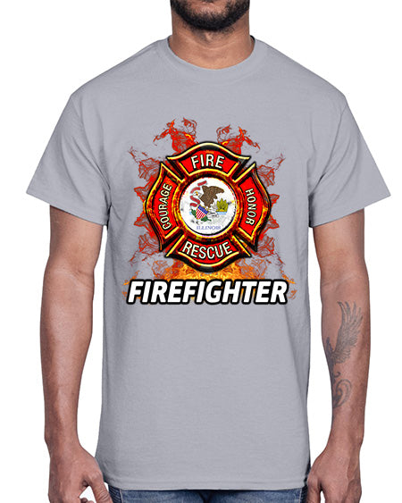 illinois firefighter 954#- fire fighter- Cotton Tee