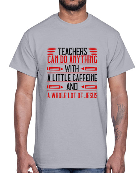 Teachers Can Do Anything With A Little Caffeine And A Whole Lot Of Jesus Style 1472#- teacher- Cotton Tee