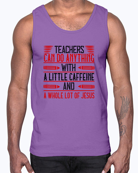 Teachers Can Do Anything With A Little Caffeine And A Whole Lot Of Jesus Style 1472#- teacher- Cotton Tank