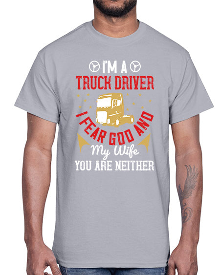 im a truck driver i fear god and my wife you are neither Style 229#- truck driver- Cotton Tee