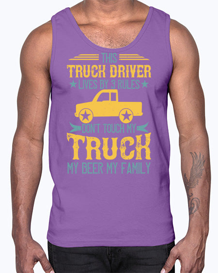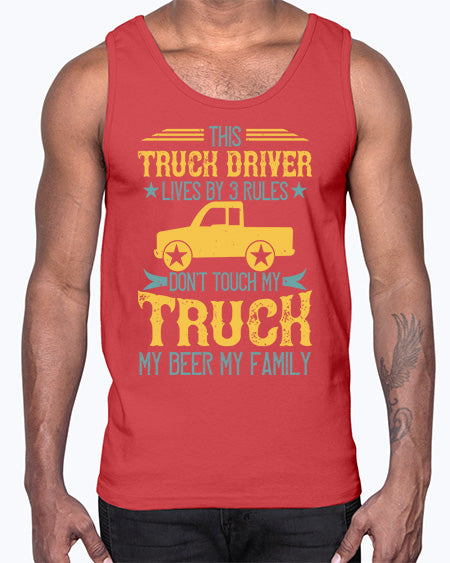 this truck driver lives by rules dont touch my truck my beer my family Style 439#- truck driver- Cotton Tank
