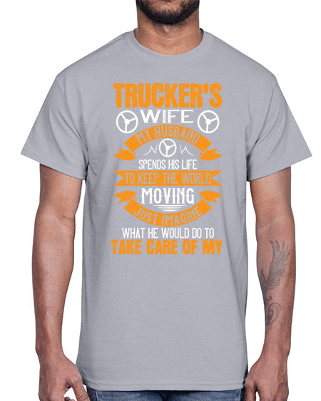 truckers wife my husband spends his life z Style 449#- truck driver- Cotton Tee