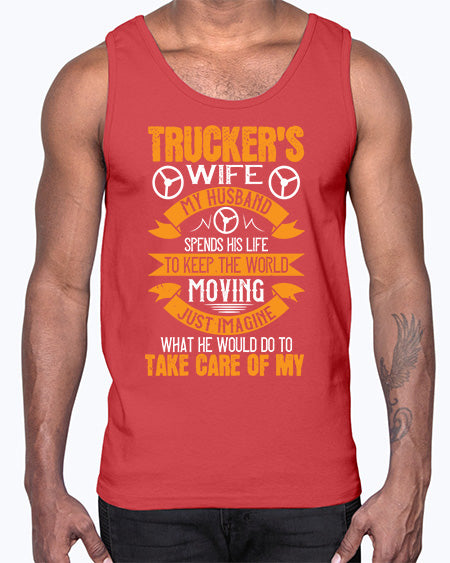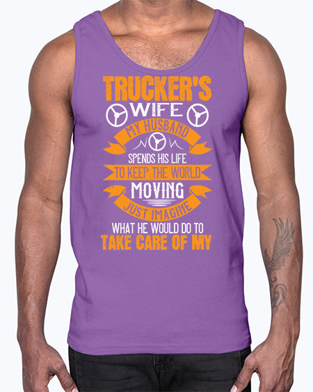 truckers wife my husband spends his life z Style 449#- truck driver- Cotton Tank