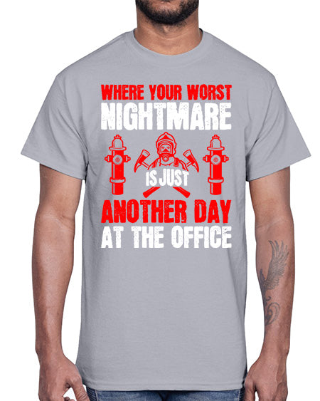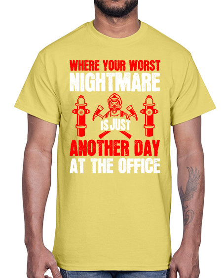 Where your worst nightmare is just another day at the office Style 1637#- fire fighter- Cotton Tee