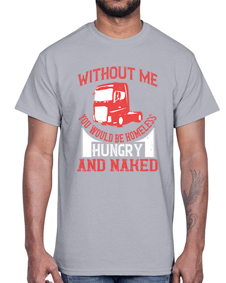 without me you would be homeless hungry and naked Style 476#- truck driver- Cotton Tee