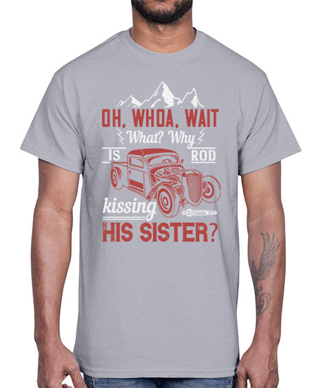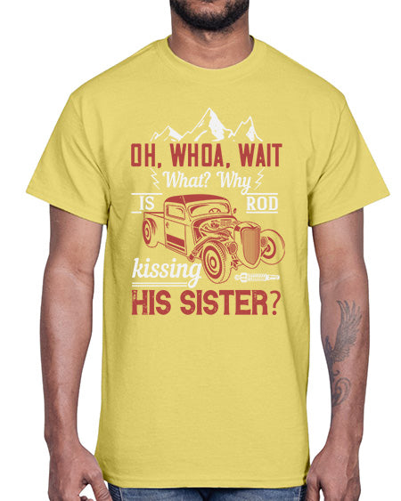Oh whoa wait what Why is Rod kissing his sister 34#- hot rod- Cotton Tee