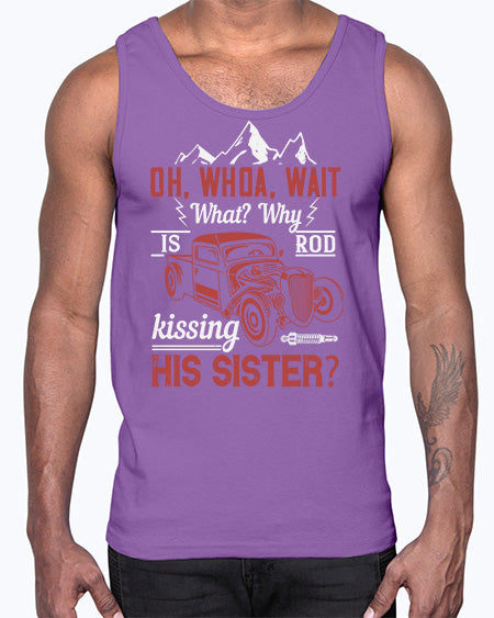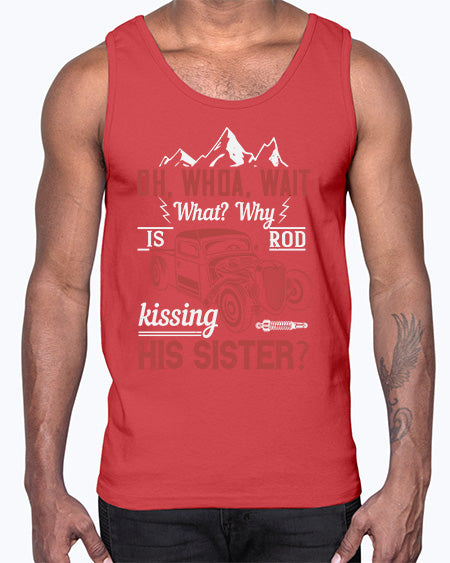 Oh whoa wait what Why is Rod kissing his sister 34#- hot rod- Cotton Tank