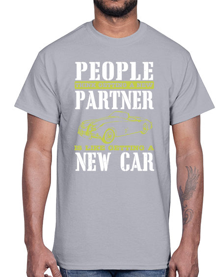 People think getting a new partner is like getting a new car 58#- car- Cotton Tee