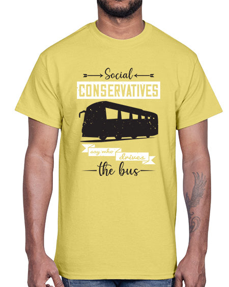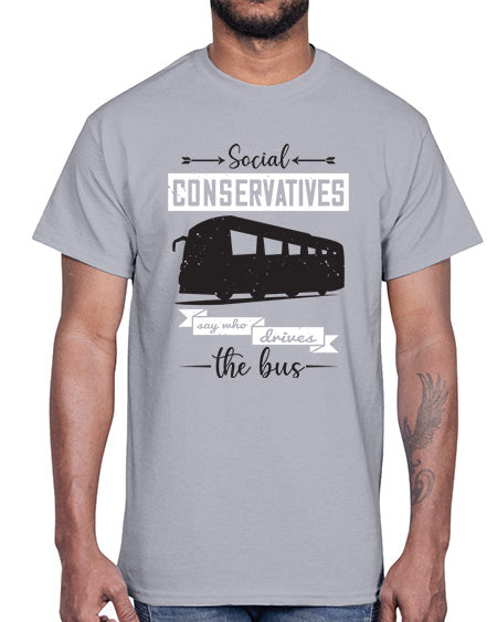 Social conservatives say who drives the bus 5#- bus- Cotton Tee