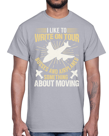 i like to write on tour busses and airplanes 22#- airplane- Cotton Tee