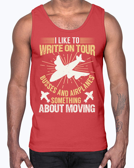 i like to write on tour busses and airplanes 22#- airplane- Cotton Tank