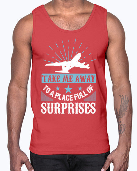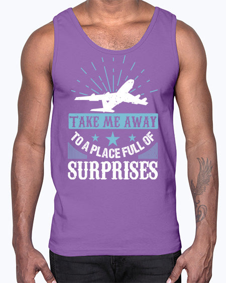 take me away to a place full of surprises 37#- airplane- Cotton Tank