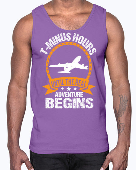 tminus hours until the adventure begins 45#- airplane- Cotton Tank