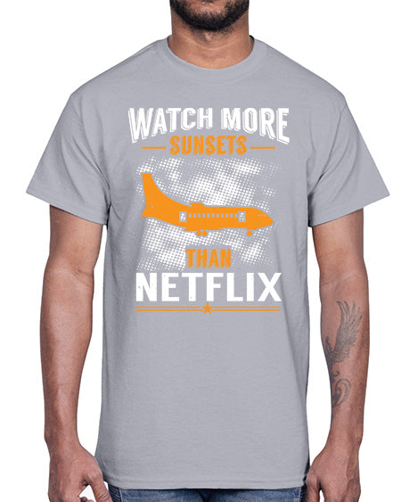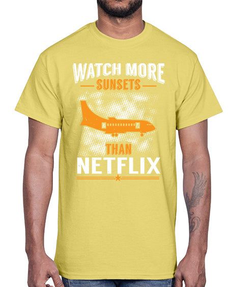 watch more sunsets then netflix 48#- airplane- Cotton Tee