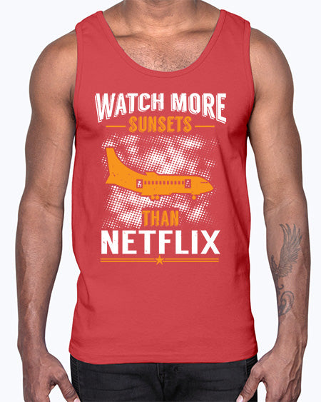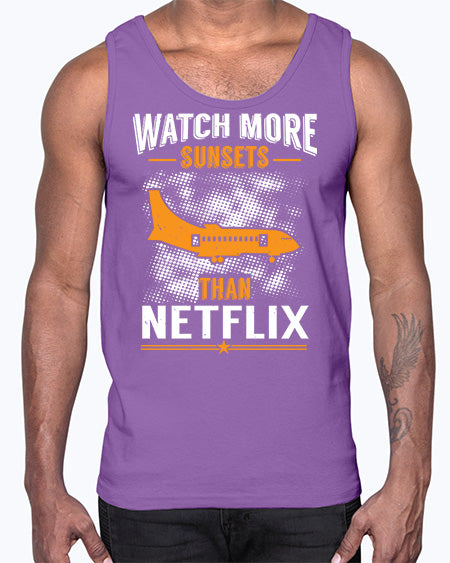 watch more sunsets then netflix 48#- airplane- Cotton Tank