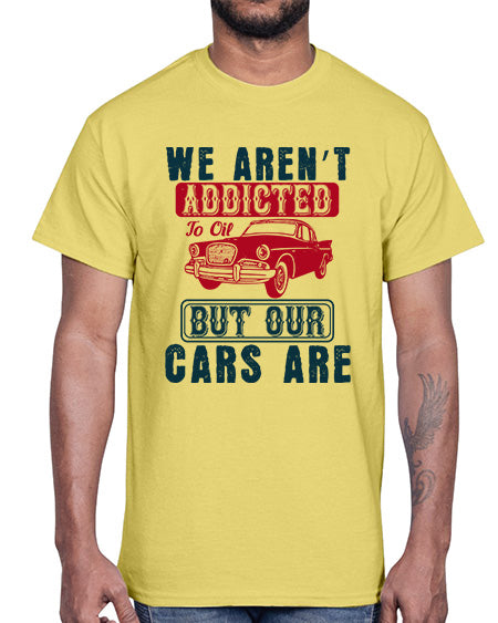 We arent addicted to oil but our cars are 90#- car- Cotton Tee