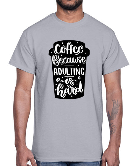 coffee because adulting is hard 103#- coffee- Cotton Tee