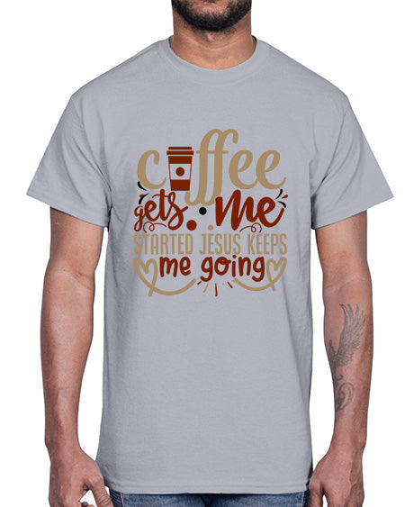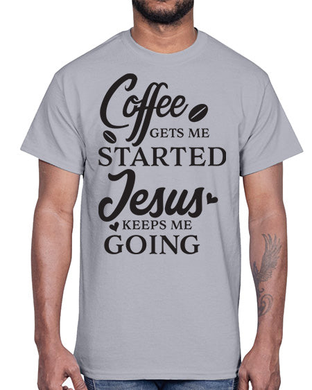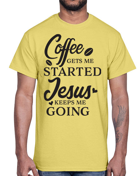 coffee gets me started jesus keeps me going 787#- coffee- Cotton Tee