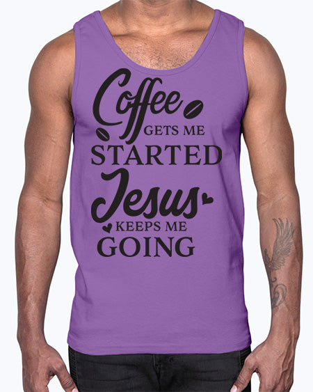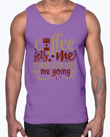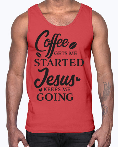 coffee gets me started jesus keeps me going 787#- coffee- Cotton Tank