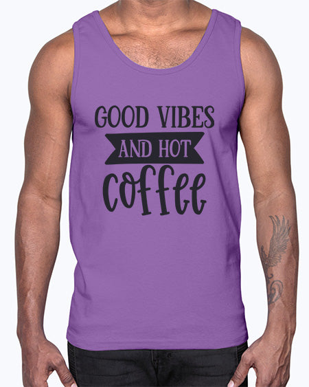 good vibes and hot coffee 1008#- coffee- Cotton Tank