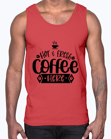 hot fresh coffee here 1060#- coffee- Cotton Tank