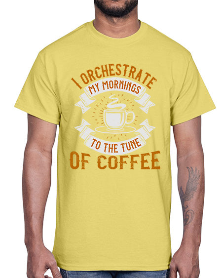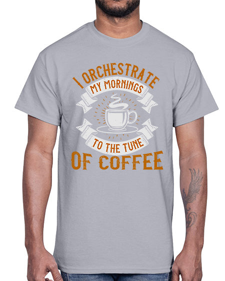 i orchestrate my mornings to the tune of coffee 242#- coffee- Cotton Tee