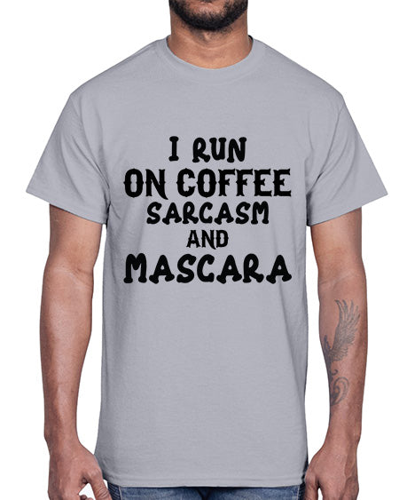 i run coffee sarcasm and mascara 1159#- coffee- Cotton Tee