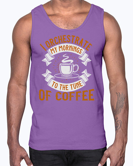 i orchestrate my mornings to the tune of coffee 242#- coffee- Cotton Tank