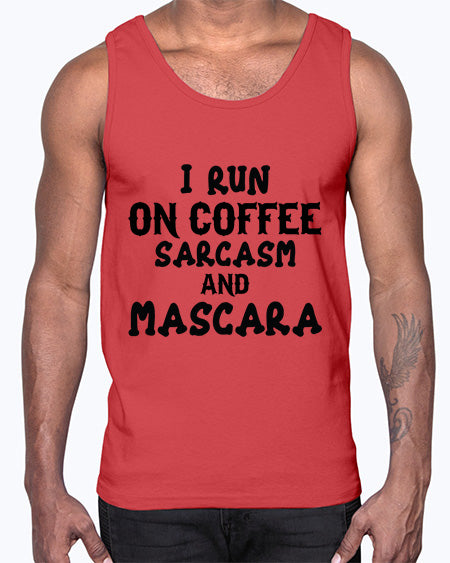 i run coffee sarcasm and mascara 1159#- coffee- Cotton Tank