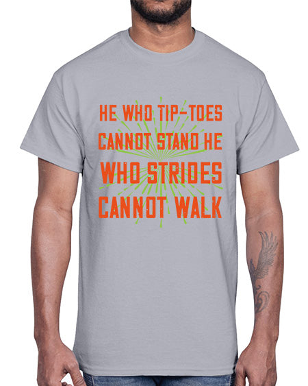 he who tiptoes cannot stand he who strides cannot walk 255#- walking- Cotton Tee