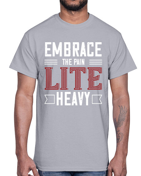 embrace the pain lite heavy 14#- gym- Cotton Tee