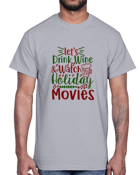 let s drink wine watch holiday movies 1285#- wine- Cotton Tee