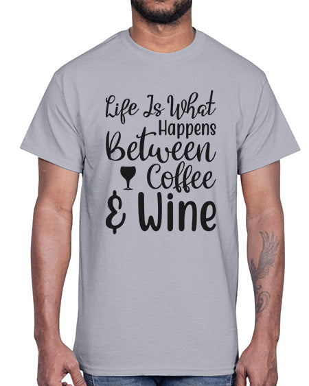 life is what happens between coffee and wine 1325#- coffee- Cotton Tee