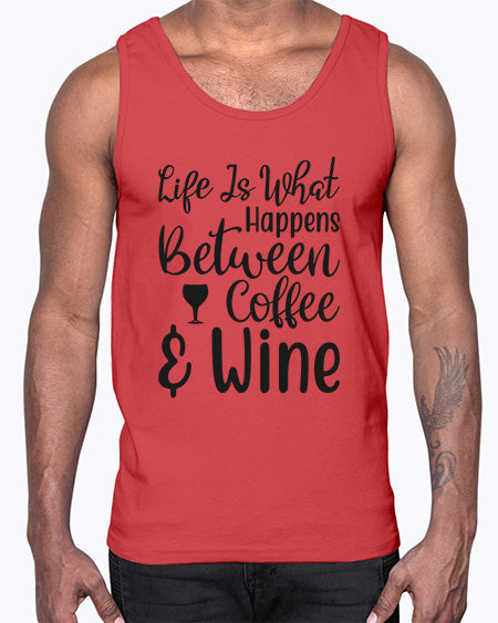 life is what happens between coffee and wine 1325#- coffee- Cotton Tank