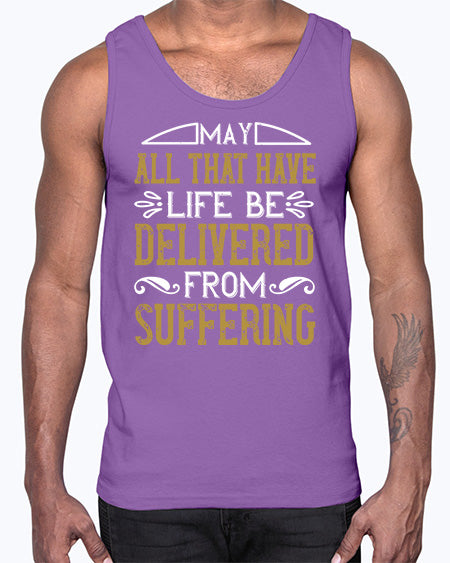 may all that have life be delivered from suffering 330#- vegan- Cotton Tank
