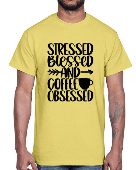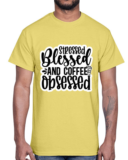 Stressed Blessed and Coffee Obsessed 1582#- coffee- Cotton Tee