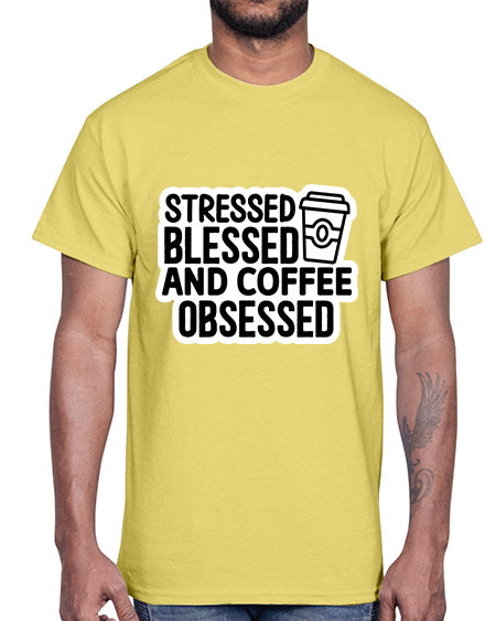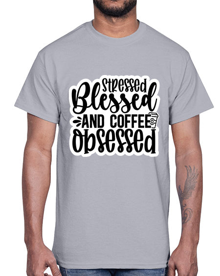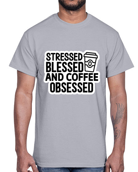 Stressed Blessed and Coffee Obsessed 1583#- coffee- Cotton Tee