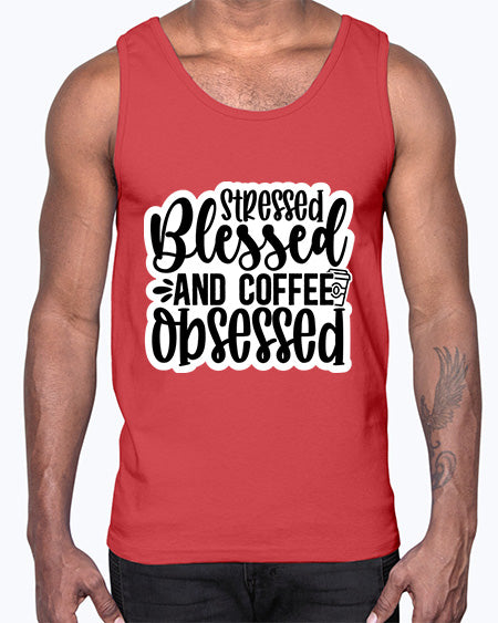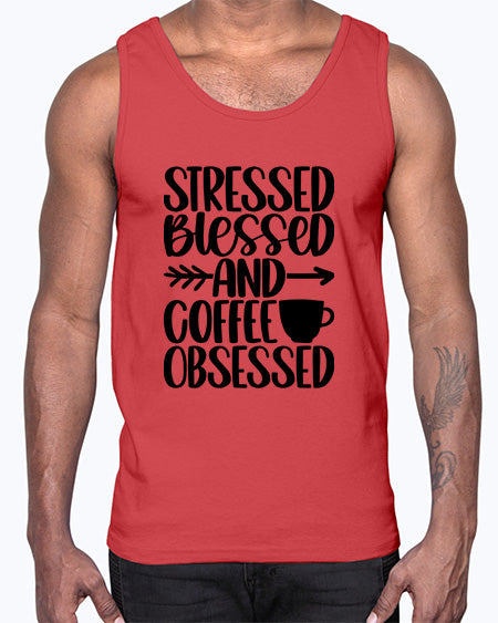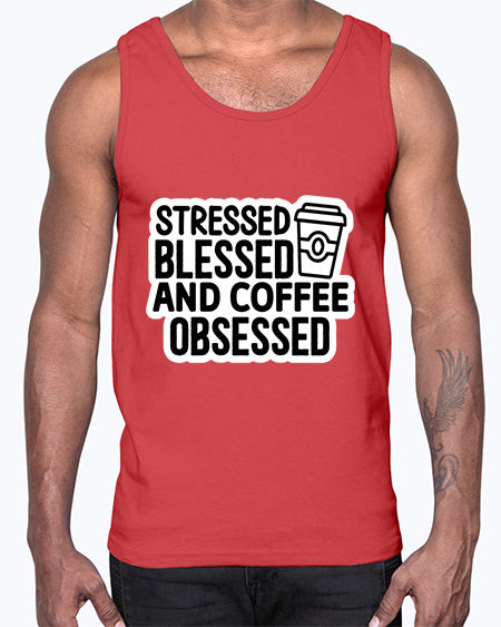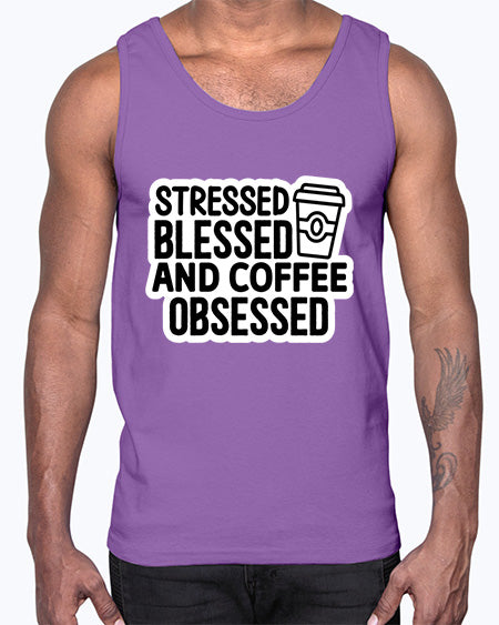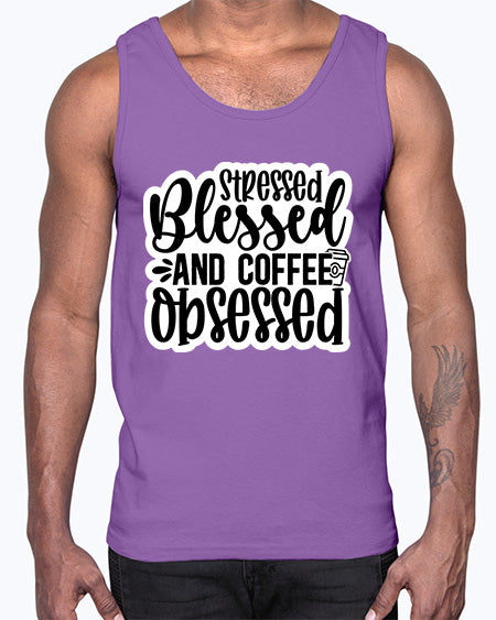 Stressed Blessed and Coffee Obsessed 1582#- coffee- Cotton Tank