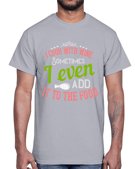 i cook with wine sometimes i even add it to the food 204#- cooking- Cotton Tee