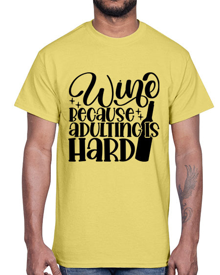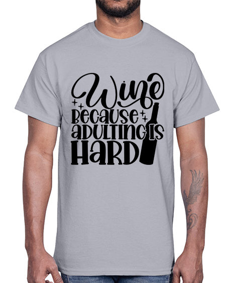 wine because adulting is hard 1726#- wine- Cotton Tee