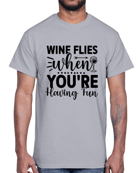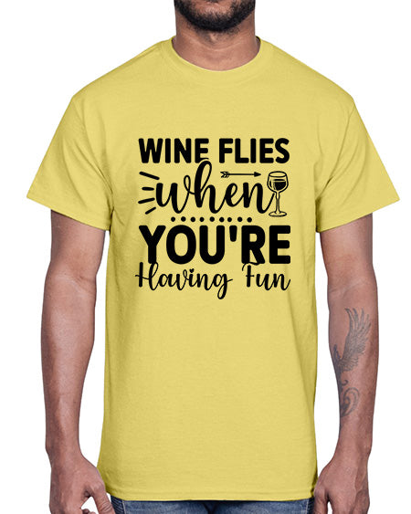 Wine Flies When Youre Having Fun 1732#- wine- Cotton Tee