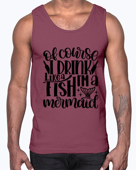 of course i drink like a fish 1452#- wine- Cotton Tank