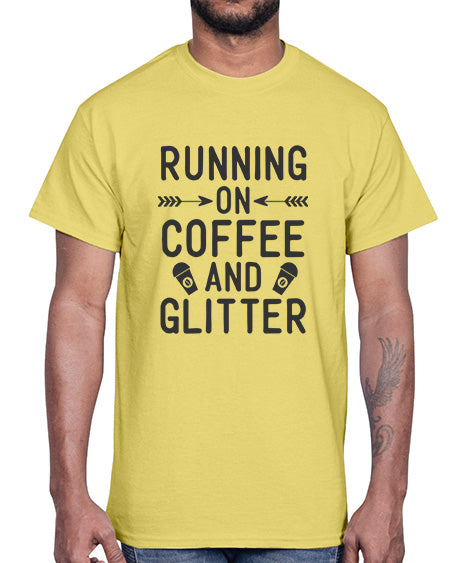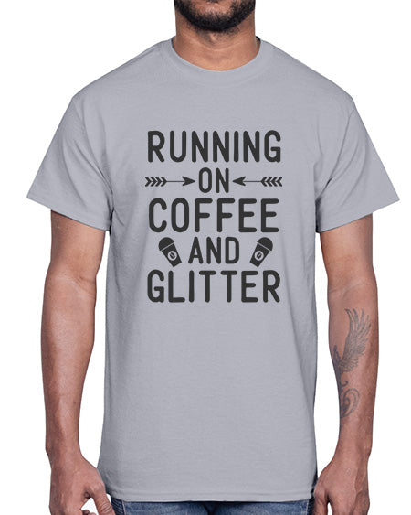 running on coffee and glitter 1512#- coffee- Cotton Tee