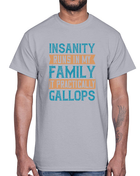 Insanity runs in my family It practically gallops 47#- funny- Cotton Tee