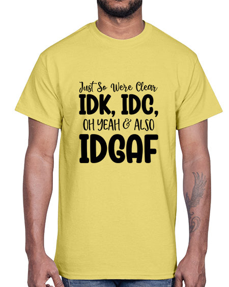 Just So Were Clear IDK IDC Oh Yeah Also IDGAF 695#- funny- Cotton Tee