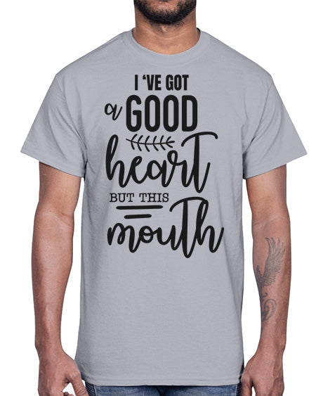 ive got a good heart but this mouth 49#- funny- Cotton Tee