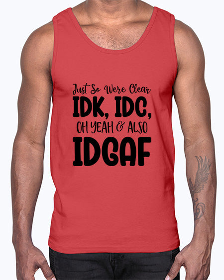 Just So Were Clear IDK IDC Oh Yeah Also IDGAF 695#- funny- Cotton Tank