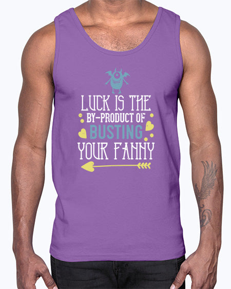 Luck is the byproduct of busting your fanny 64#- funny- Cotton Tank