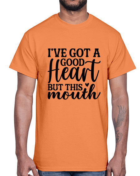 ive got a good heart but this mouth 49#- funny- Cotton Tee